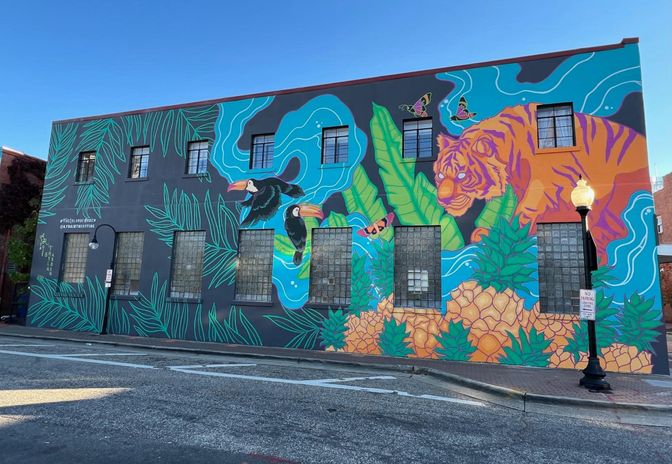 Our mural was located at 110 Anderson Street, Downtown Fayetteville, kindly donated by SFL+A Architects.