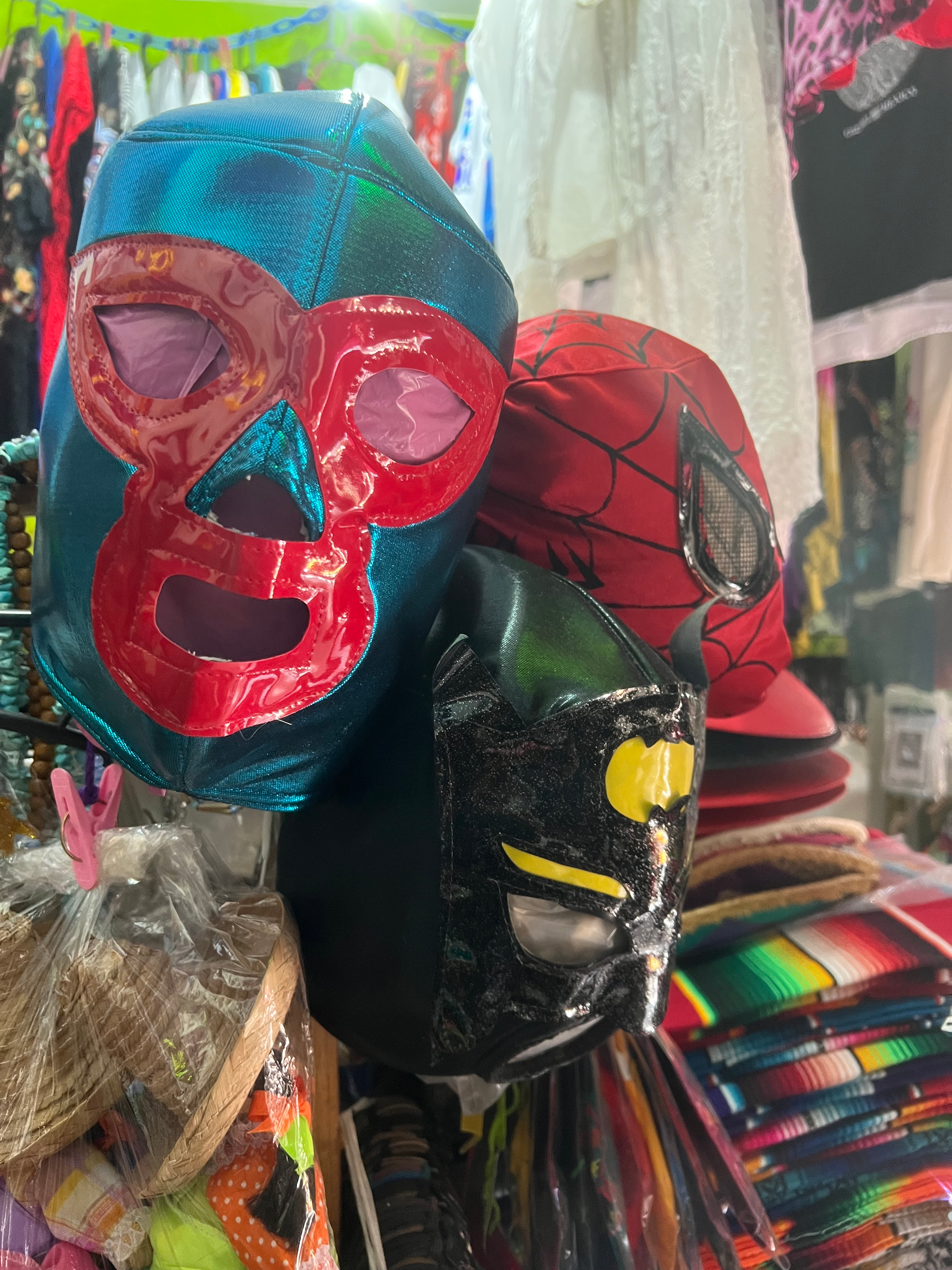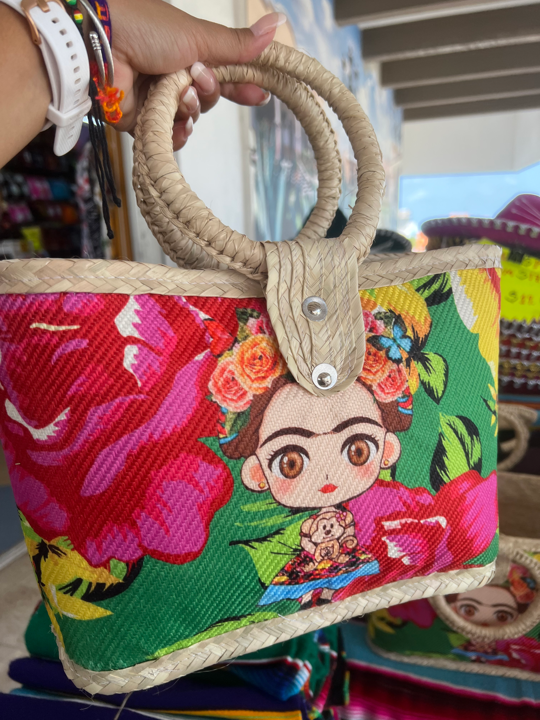 Mexican hats, Frida Khalo handbag, and masks from Cozumel, in Mexico. One of the most colorful and joyful