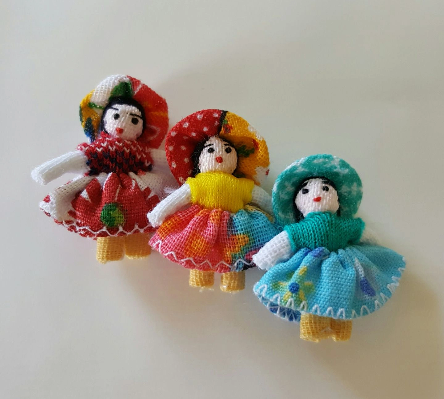Three different types of dolls, with similar meanings in each country: the Ekeko Doll from Peru, the Gravata Mini Dolls from Brazil, and the Maneli-Neko Cat from Japan: all symbols of luck and prosperity.