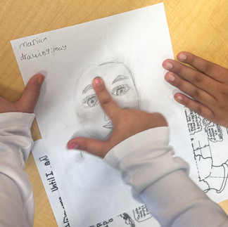 4th & 5th Graders learn about facial features from people around the world. while applying notions of proportion and shading